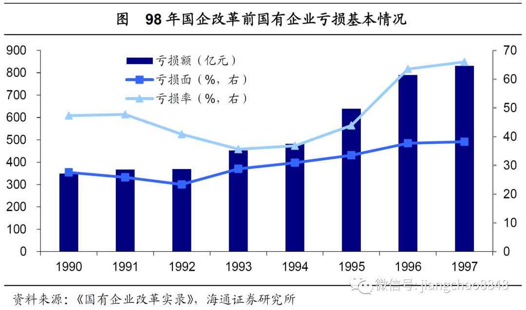 这一时期,国有企业面临的问题本质上是工业企业面临的问题,通过改革,工业企业、国有企业以退为进,以破产兼并、人员分流,换来了产能出清、扭亏为盈,以规模的收缩换来了盈利的改善。