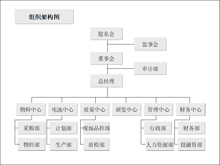 某制造企业成立于1996年,主要从事电池生产与销售的民营企业, 企业的组织架构如下图所示。