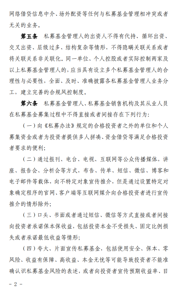 第六条 私募基金管理人、私募基金销售机构及其从业人员在私募基金募集过程中不得直接或者间接存在下列行为: