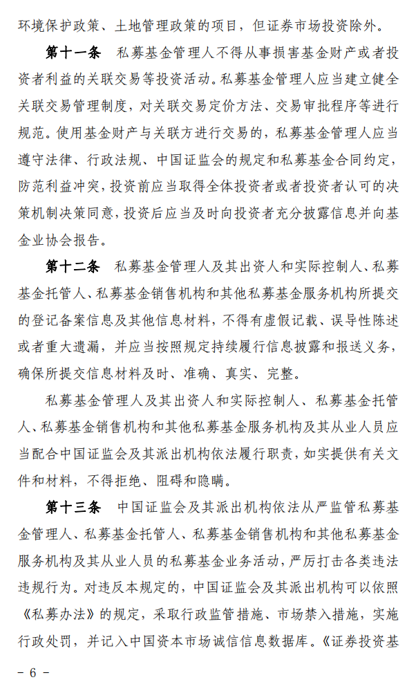 第十条 私募基金管理人管理的私募基金不得直接或者间接投资于国家禁止或者限制投资的项目,不符合国家产业政策、环境保护政策、土地管理政策的项目,但证券市场投资除外。