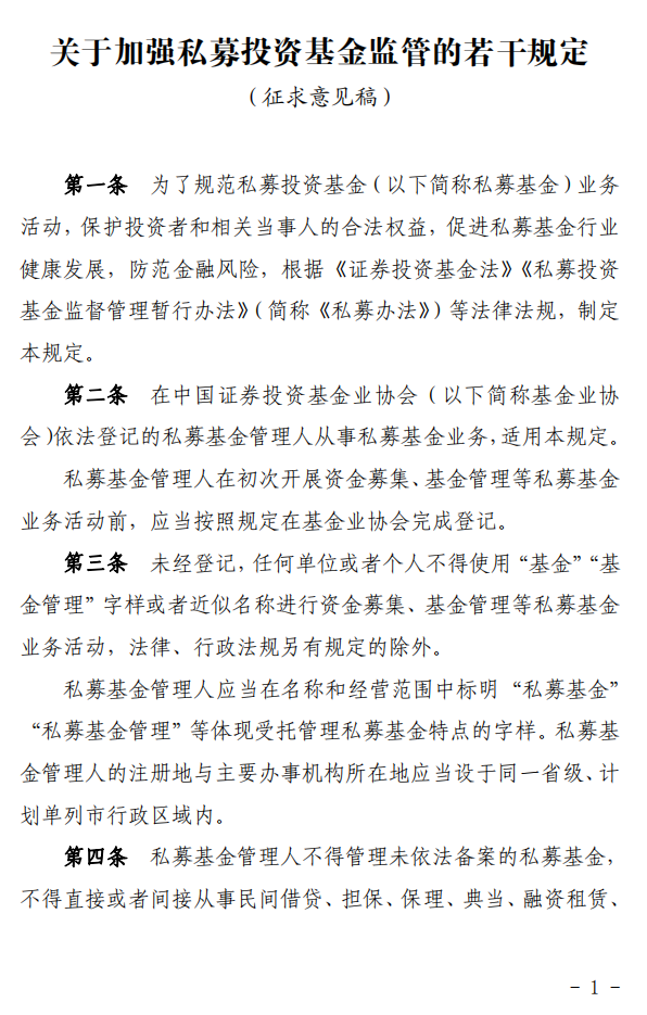 日前,证监会就《关于加强私募投资基金监管的若干规定(征求意见稿)》公开征求意见。