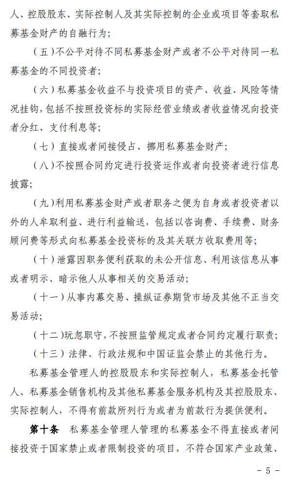 (五)不公平对待不同私募基金财产或者不公平对待同一私募基金的不同投资者;