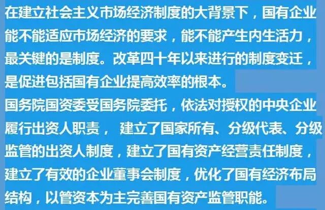 总之,国务院国资委受国务院委托,依法对授权的中央企业履行出资人职责, 建立了国家所有、分级代表、分级监管的出资人制度,建立了国有资产经营责任制度,建立了有效的企业董事会制度,优化了国有经济布局结构,以管资本为主完善国有资产监管职能。
