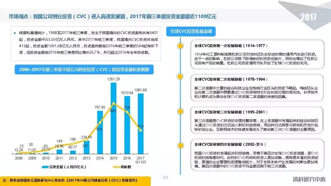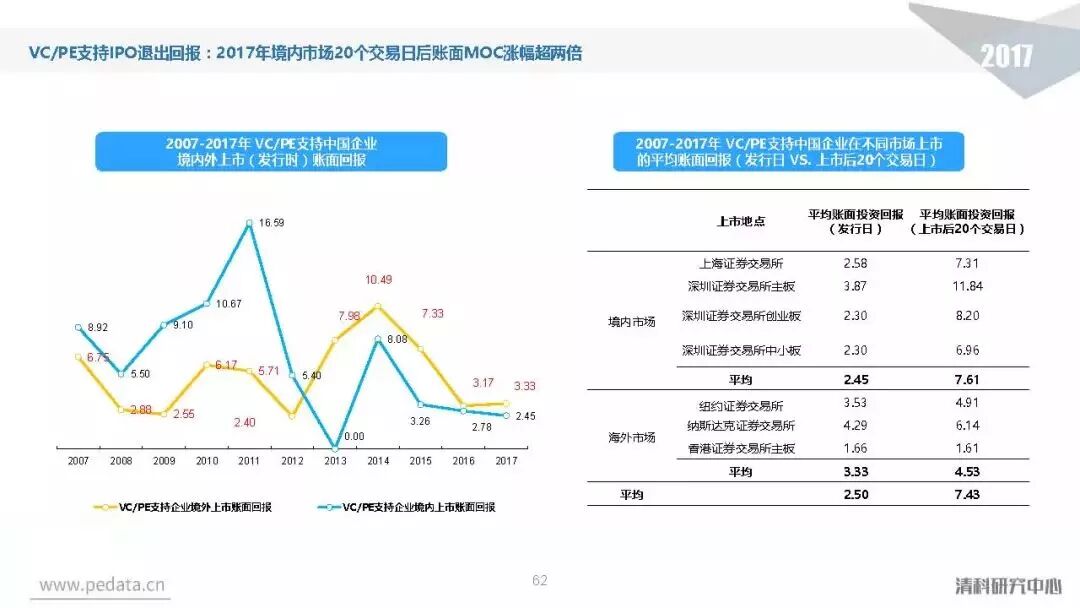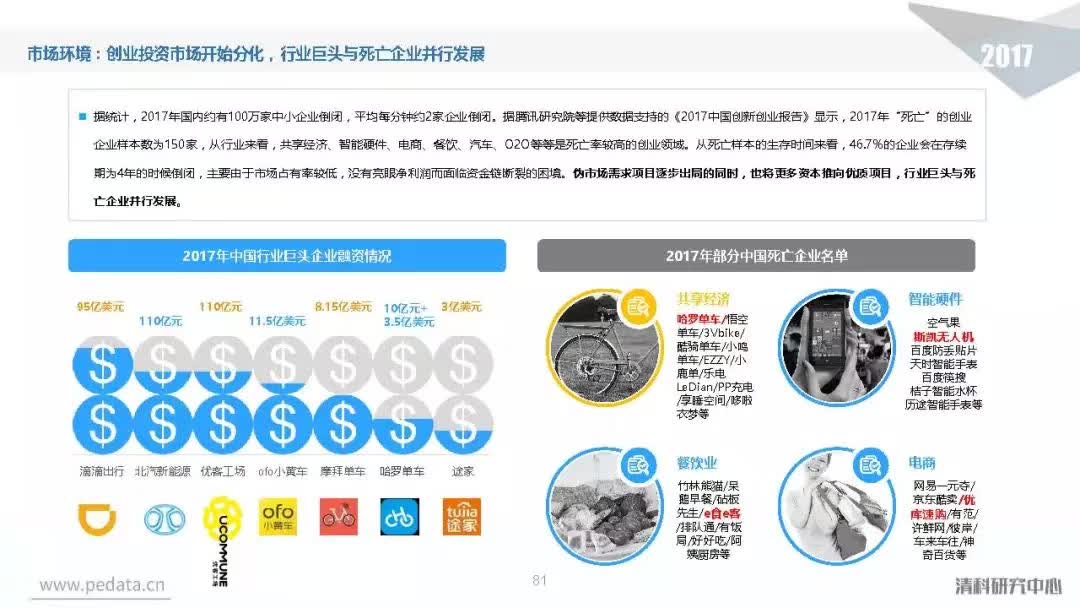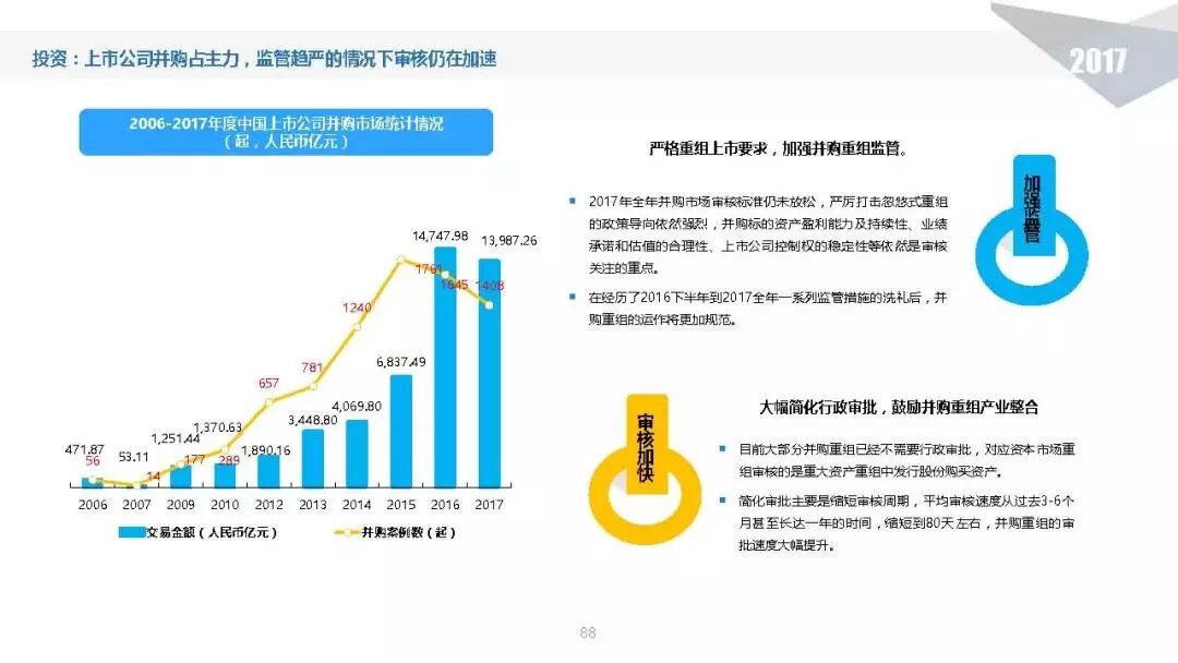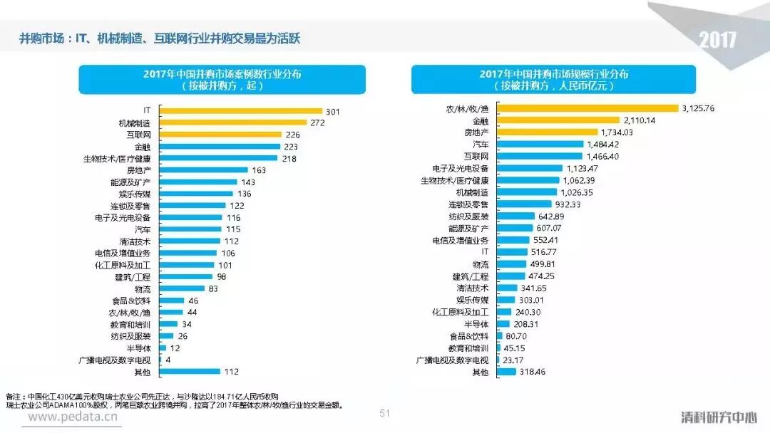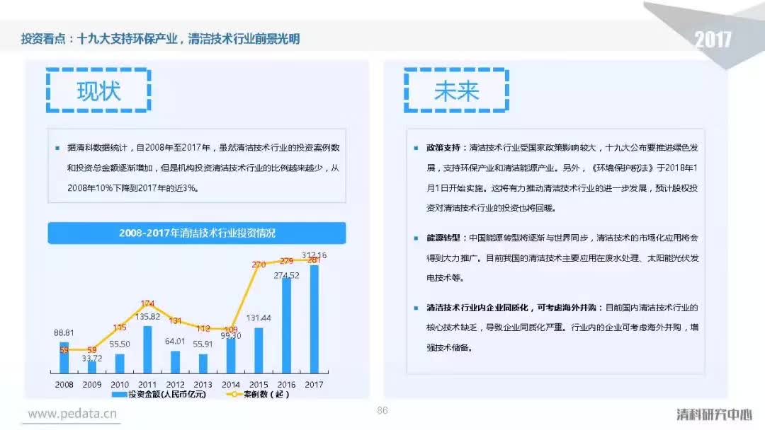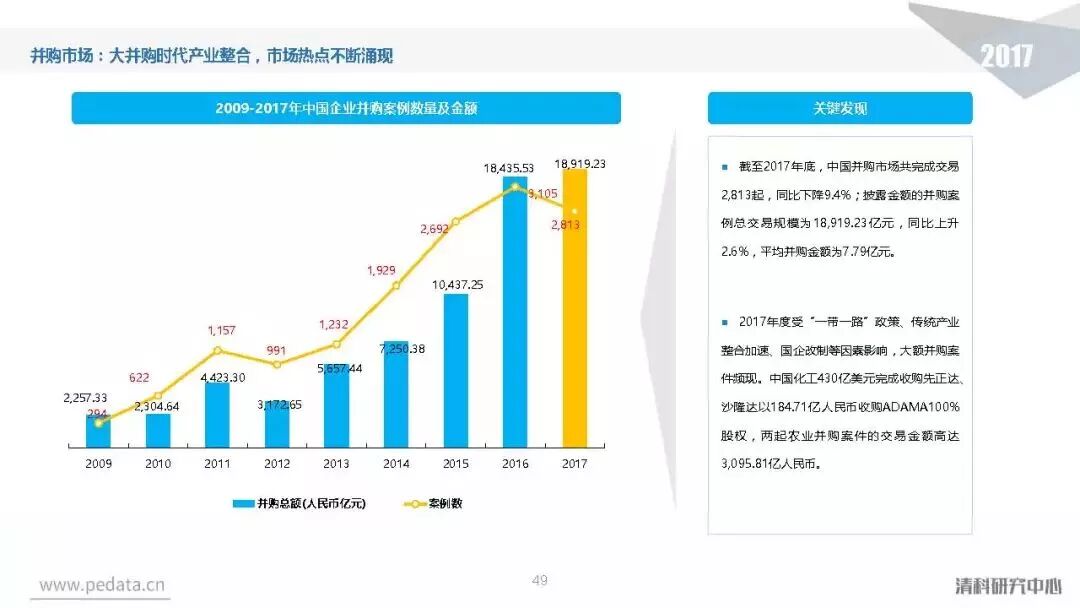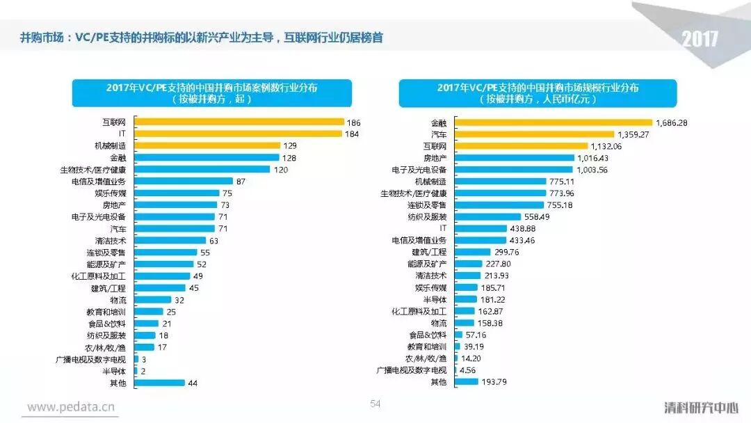 投资方面,2017年中国股权投资市场共发生投资案例数量10,144起,涉及投资金额合计达到1.2万亿元人民币,同比分别增长11.2%、62.6%。