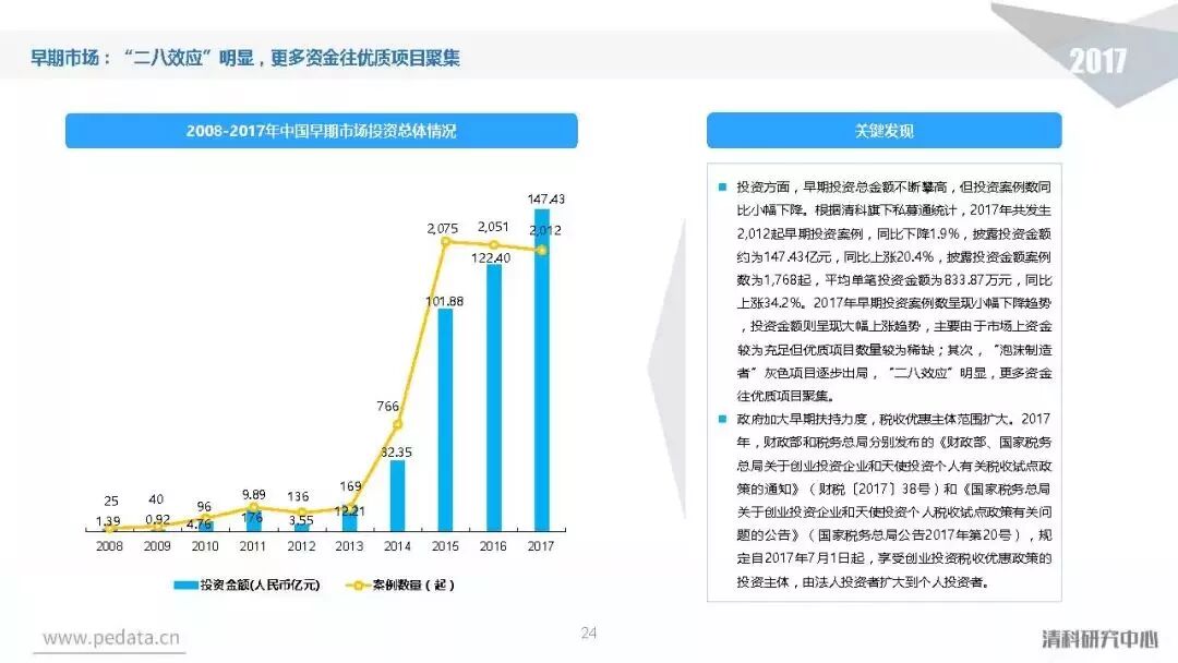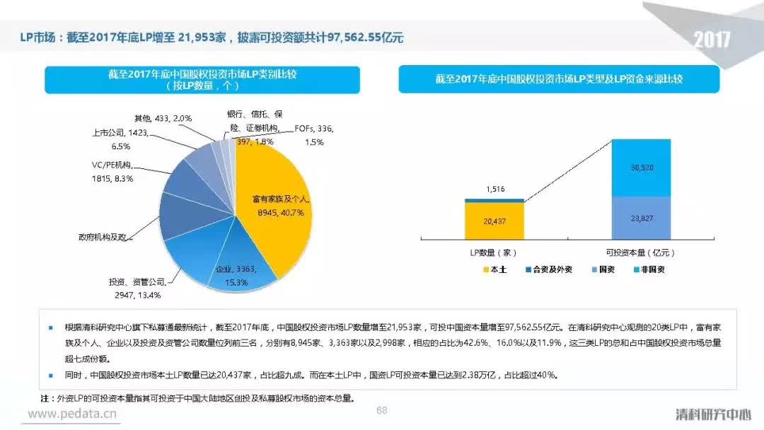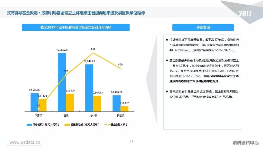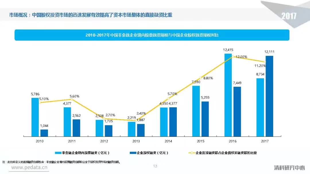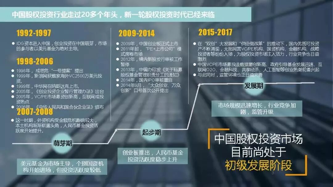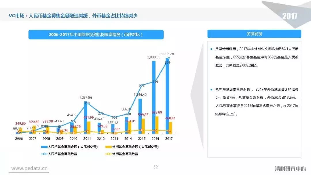 截至2017年底,中国股权投资市场资本管理量接近8.7万亿人民币,人民币基金在中国股权投资市场的主导地位愈加明显。
