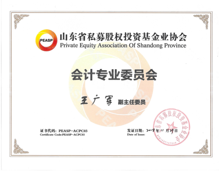 公司总经理王广军受聘为专委会的副主任委员,协会会长为其颁发证书,这充分体现出我司作为私募股权投资基金管理人的专业水准和高水平的业务能力。