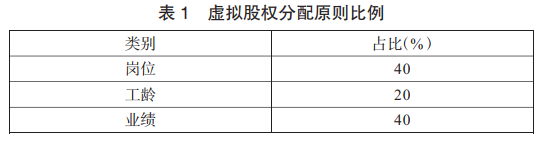 分配原则。根据授予对象的岗位、工龄和业绩,结合对公司的贡献情况综合评估,对虚拟股权进行分配。具体分配原则比例见表1。