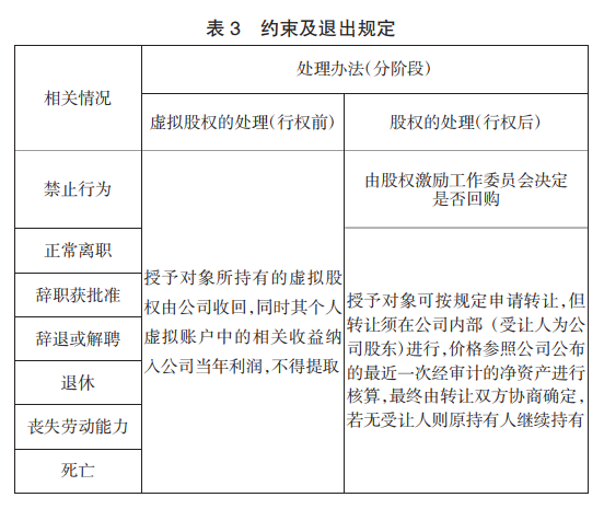 当授予对象出现表3的情况之一时,经股权激励工作委员会认可,按照表3进行处理。