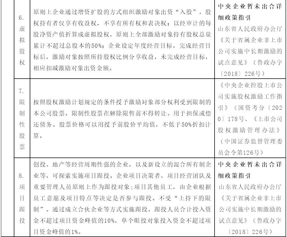 国企混改实操系列之五:国企混改实操系列之五:超额利润分享机制操作指引落地 山东“双百企业”和“科改示范企业”中长期激励工具超过12类