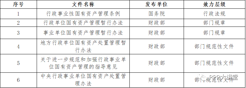 为直接缓解财政压力,地方政府有偿转让的多为行政事业单位所占有、使用的国有资产,其出让主体为相关行政事业单位。因此,区别于企业国有资产交易,其适用的法律制度为行政事业单位的国有资产管理制度,具体包括中央层面行政法规及部门规章、规范性文件,以及地方法规、规范性文件等。其中,中央层面主要制度如下:
