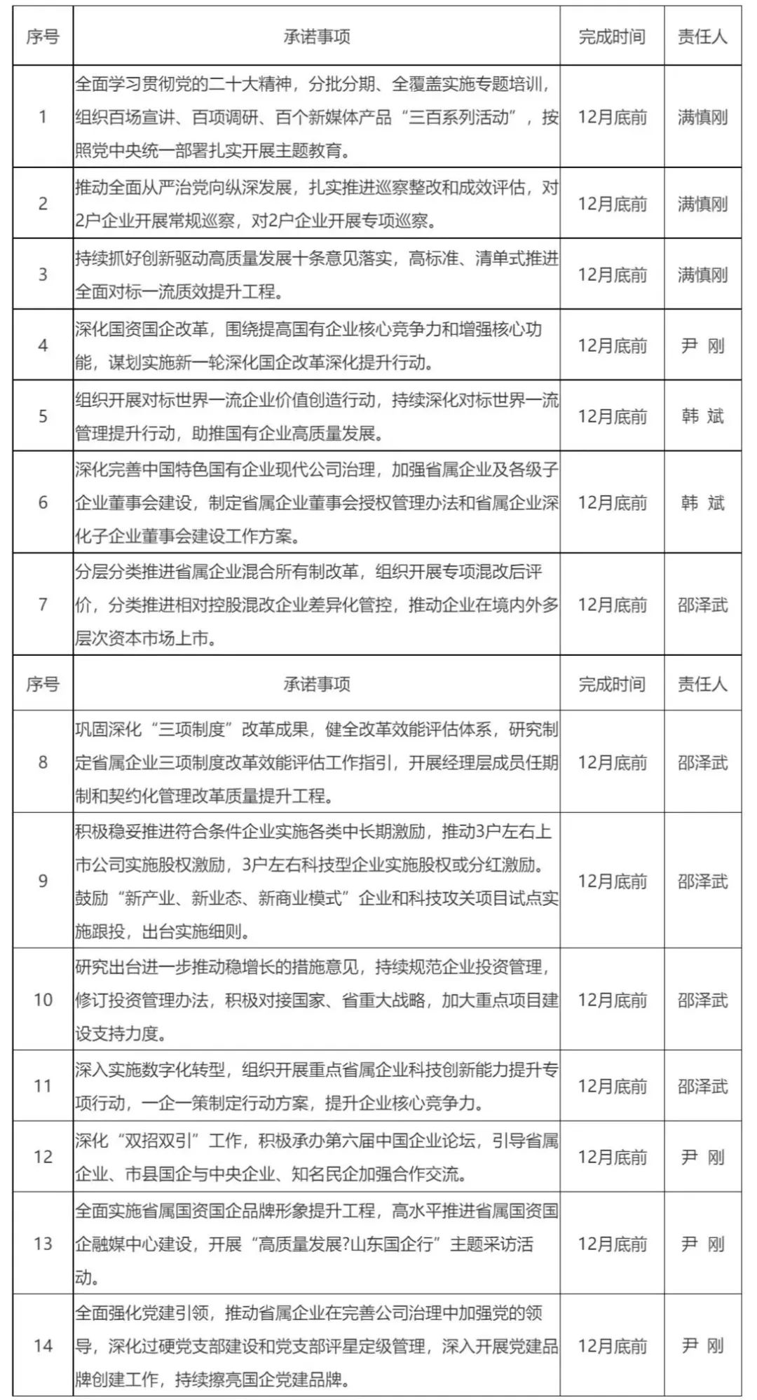 省国资委2023年本职工作和重点任务公开承诺事项及责任人