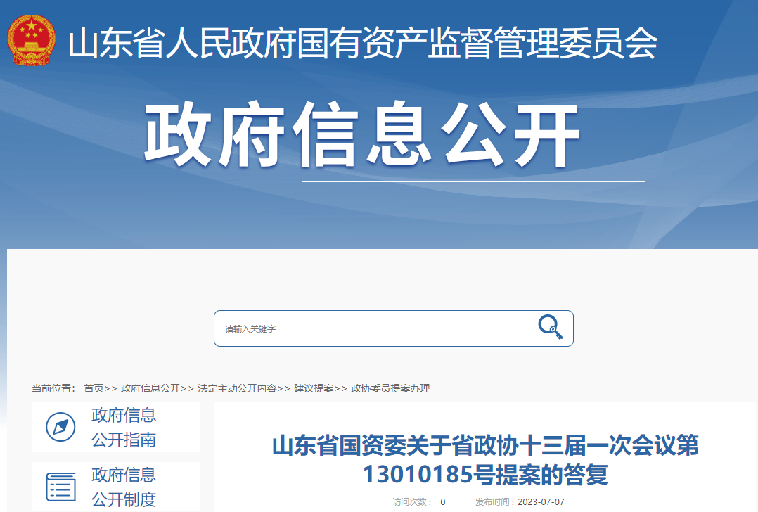 山东省国资委关于省政协十三届一次会议第13010185号提案的答复