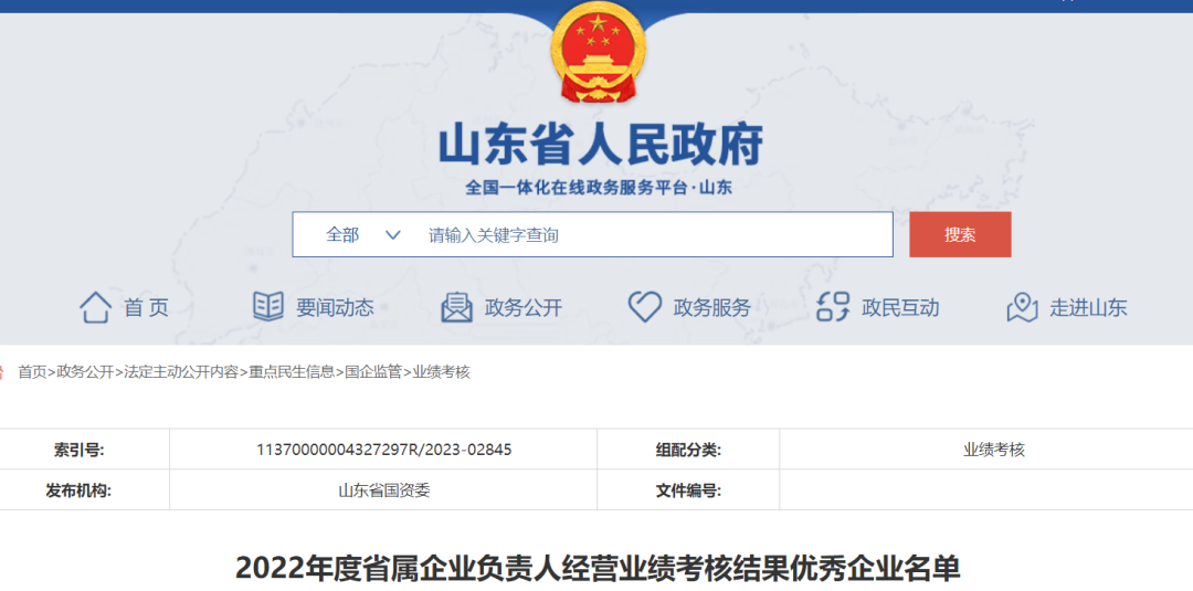 根据《山东省国资委关于印发山东省省属企业负责人经营业绩考核办法的通知》(鲁国资考核〔2022〕1号)等有关规定,2022年度省属企业负责人经营业绩考核结果已经省国资委党委2023年第17次会议研究审定,现将优秀企业名单通报如下: