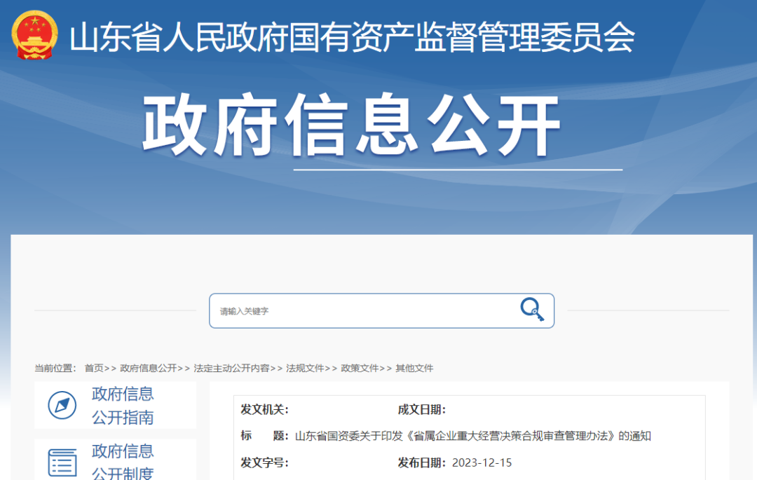 山东省国资委关于印发《省属企业重大经营决策合规审查管理办法》的通知