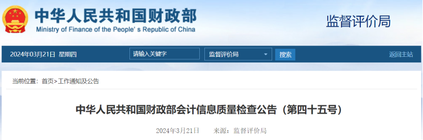 据央视新闻消息,3月21日,财政部发布会计信息质量检查公告,同时公布十项典型案例(详见后附全文)。根据公告,2023年,财政部部署开展财会监督专项行动,组织各地财政厅(局)对2161家会计师事务所开展检查,覆盖面超过全国会计师事务所总量的20%。